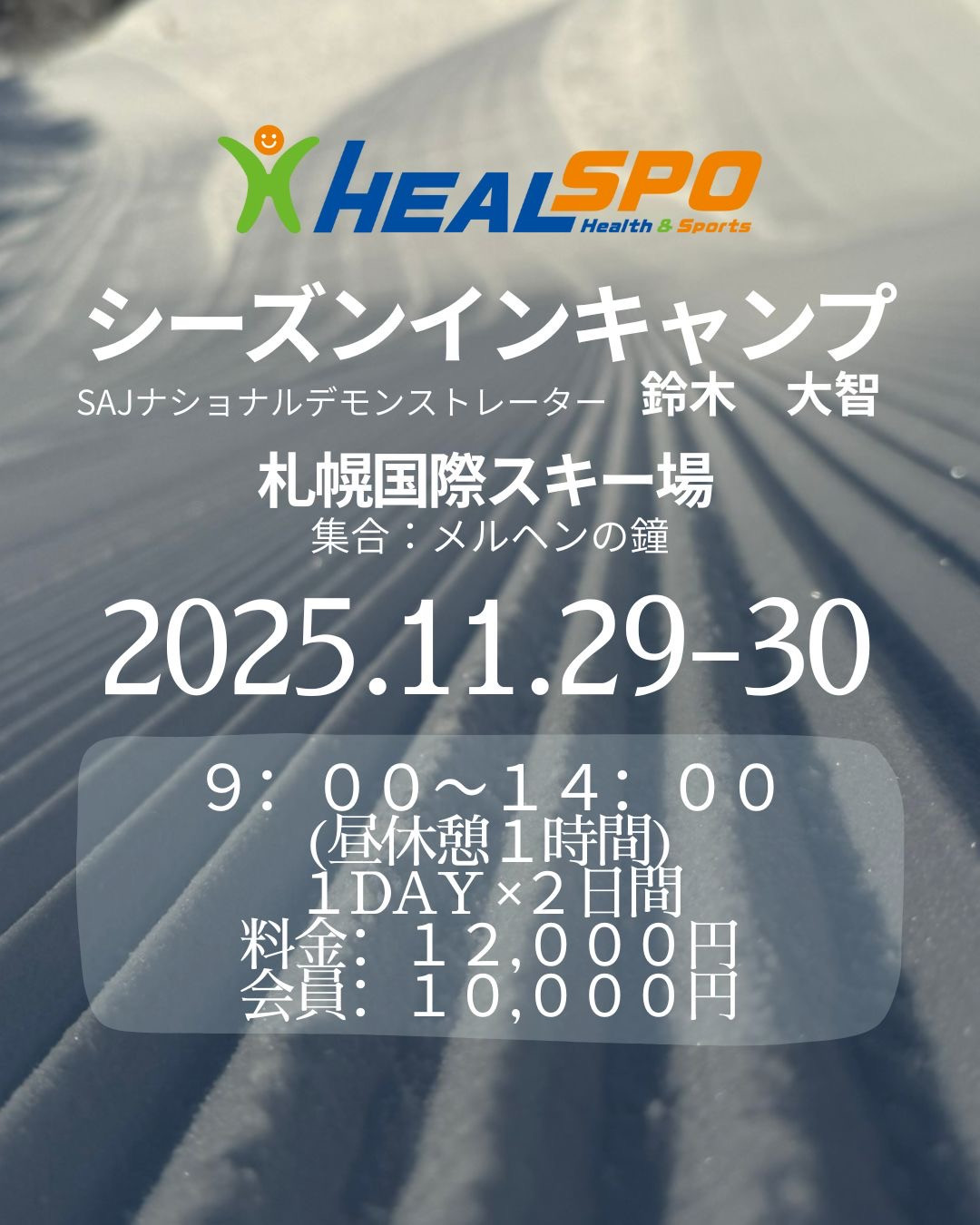 SAJナショナルデモンストレーター兼当スキー教室校長のシーズンインキャンプを実施します。このシーズンインキャンプでは、SAJスキーメゾットに従い大切な重要なポイントを噛み砕いて説明していきます。